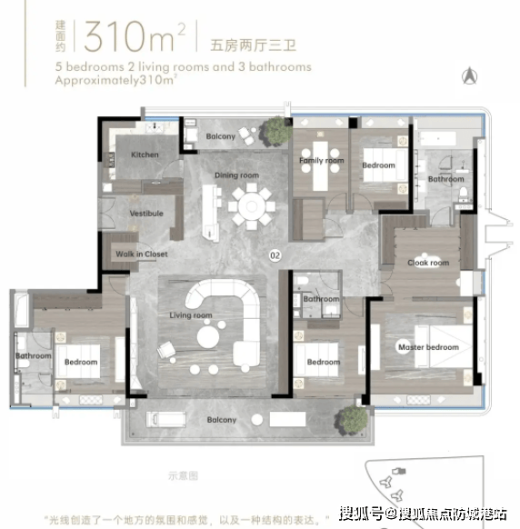 264-326㎡五房两厅四卫是项目的顶配户型,均价约13-13.5万/㎡,由知名设计师操刀打造,目前剩余房源不多,稀缺性十足,适合追求顶级居住体验的高端置业者,或者资产配置人群,这款户型堪称“终极改善”之选。