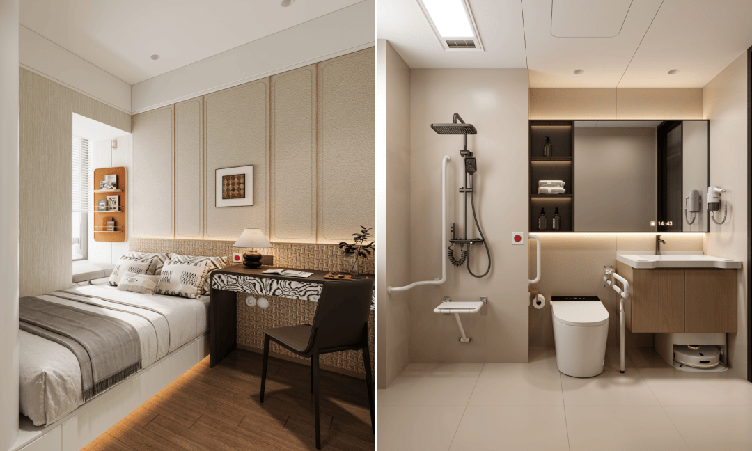 针对酒店空间的特殊需求,华耐智装创新研发“酒店T+”装配式技术体系,打造了一个快速装修、缩短施工周期,模块化安装、增加使用寿命,杜绝渗漏、提升品质的酒店空间建造方案;面向康养领域,打造适老化整体卫浴融合人体工程学设计,精准匹配老年群体安全便捷需求。